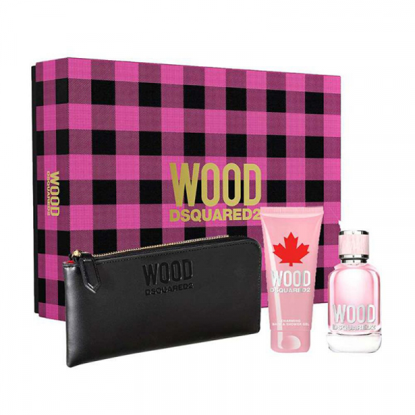 DSQUARED2 WOOD POUR FEMME set (edt 100 ml + 100 ml s\g + Wallet) (L) примятые